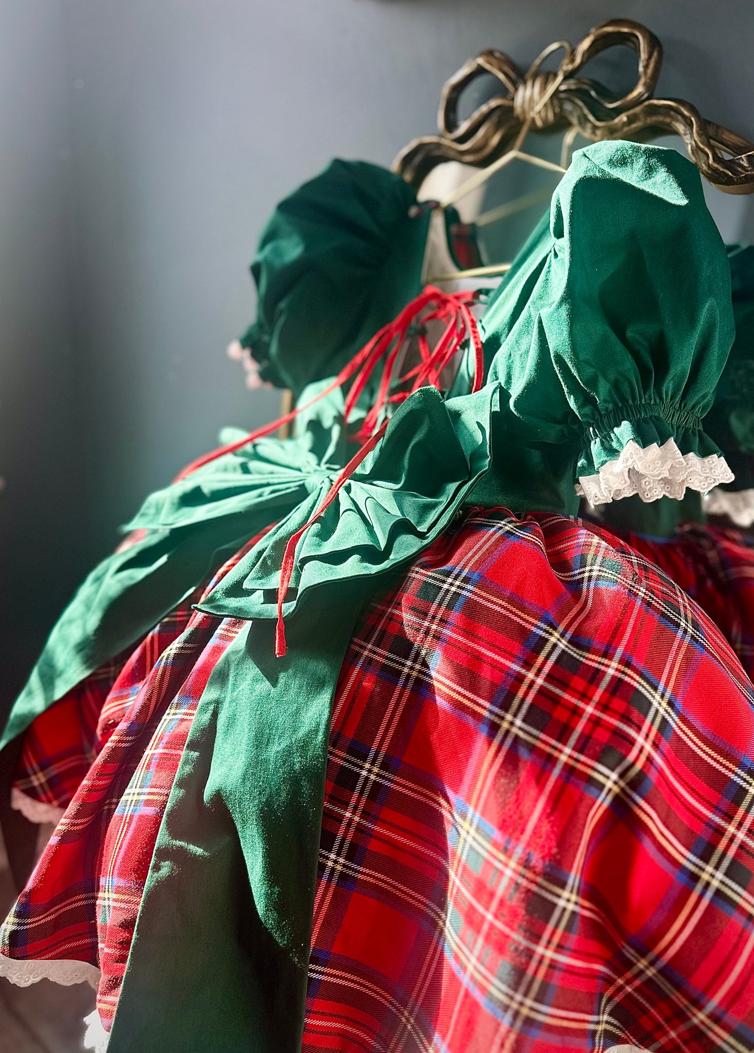 A timeless holiday heirloom, handcrafted in our atelier with exquisite details for your little one’s most magical moments. Featuring a full plaid skirt, delicate lace trims, and endless customization options, this dress is made to twirl through Christmas gatherings, family portraits, and festive celebrations.